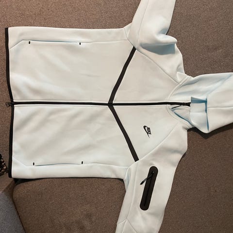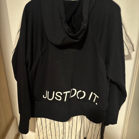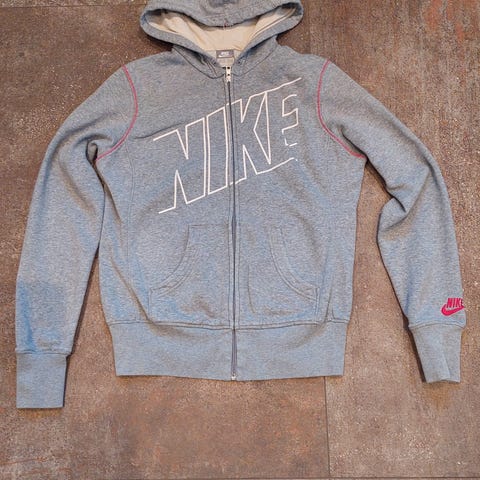 Nike løping hettegenser for unisex i størrelse M. Genseren har grønn farge med mønstrede ermer og hette. Laget for løping med funksjonelt materiale og glidelåslomme på siden.