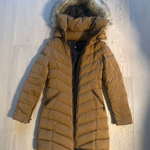 Jakke i dun som rekker til lårene.