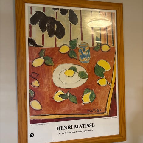Retro vintage innrammet poster/bilde av Henri Matisse selges kr.1000,-. Tittel Blue nude. 120x48 cm. Profesjonelt innrammet . Kan sendes.