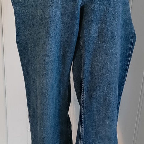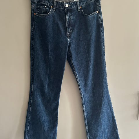 En 5-lommersjeans i bomullsdenim med noe stretch for god komfort. Bootcut med smal passform fra midje til lår, som svinger ut fra kneet til nederkanten. Høy midje og gylf med knapp og glidelås. Lengre lengde, designet for å ligge i krøll over foten. str 42
