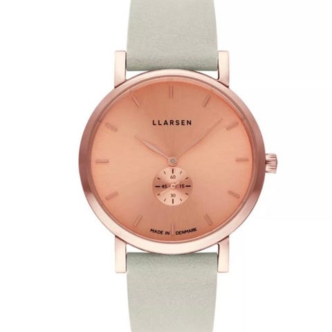 Dameklokke fra Skagen Denmark med marineblå urskive og lysebrun lærreim. Modell SKW2355. Lite og pent brukt.