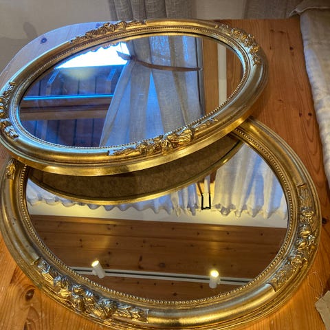To ovale fine speil . Litt bruksmerker. For tilstand og mål se bilder. Selges samlet 350kr