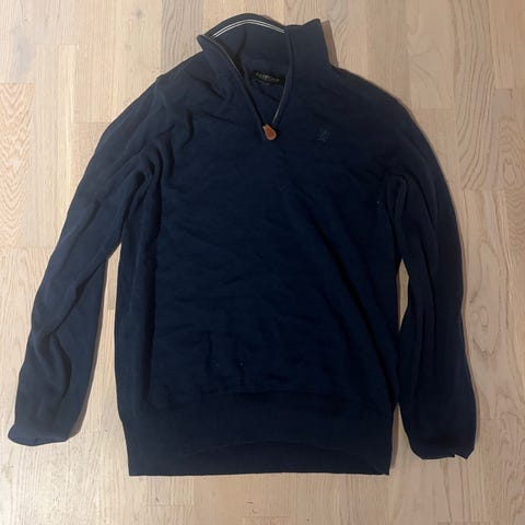 River Island denimbukse for herre i størrelse S med midjevidde W30. Buksen er blå og laget av denimmateriale.