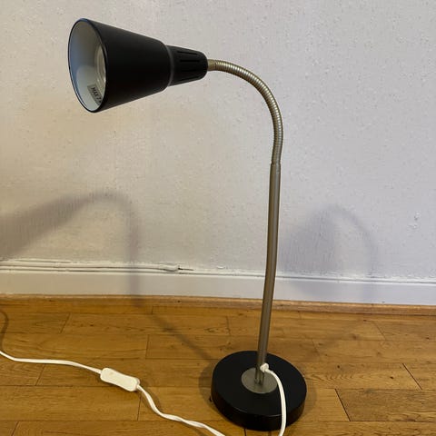 Bordlampe med hvit lampeskjerm