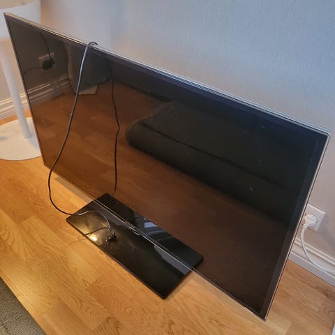 TV som har hengt i et treningsrom, den mangler fot og fjernkontroll.