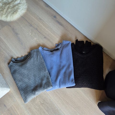 6 gensere og en t-skjorte, str small.