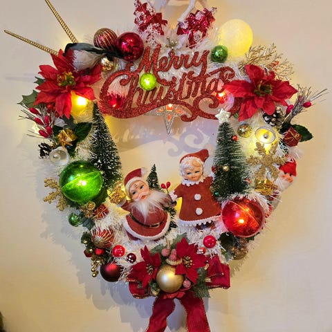 Santa Love - Retro, Vintage, Antikk, Julepynt, Dørkrans / Julekrans / Krans