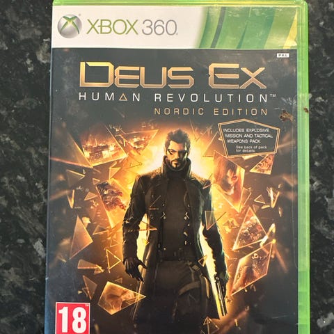 Deus Ex Human Revolution Limited Edition Xbox 360-spill. Inkluderer spesialinnhold og utvidelser som følger med den begrensede utgaven av spillet.