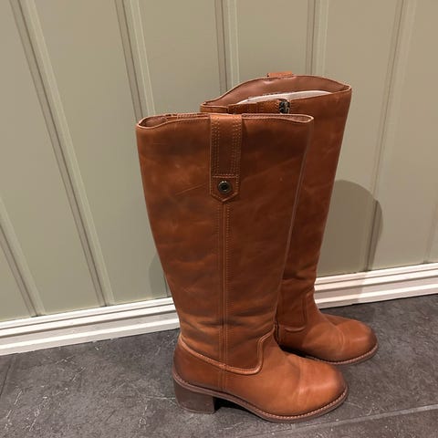 Pent brukt damestøvlett i skinn. Størrelse 6.5. Kan sendes.