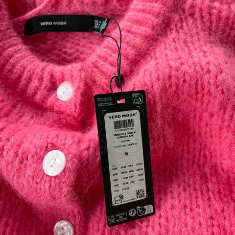 Lekker ella&il Cardigan i mohairull i rosa farge, størrelse M for dame.