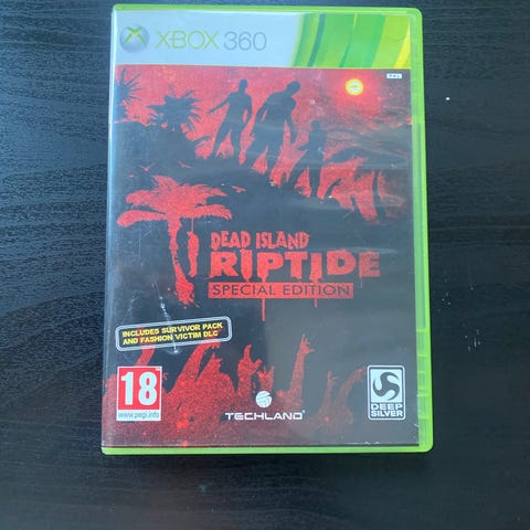 Dead Island Riptide Xbox 360 spill. Action- og eventyrspill med aldersgrense 18 år. Utviklet av Techland og utgitt av Deep Silver.
