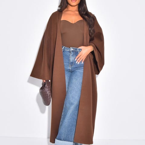 Aldri brukt vakker kimonojakke med belte i khaki farge. Viskoseblanding er veldig behagelig å ha på. One size størrelse. Kan passe alt fra XS til XL. Har fortsatt avslappende form i størrelse M/L.