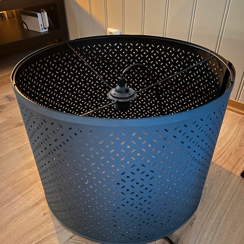 Hvit/messing IKEA lampeskjerm selges. 60cm diameter, 35 cm høyde.