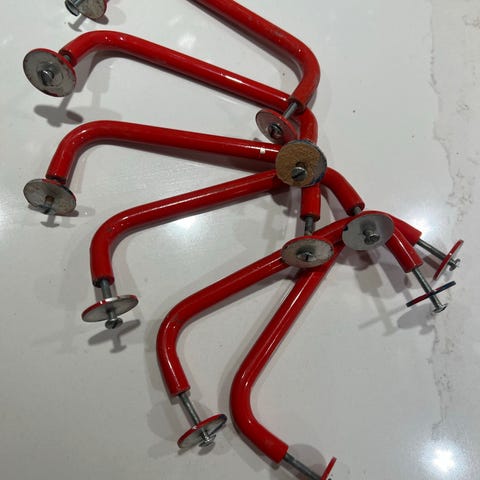 2 stk retro hattehyller i teak selges, pent brukte og helt i orden. Ingen skader på nettingen. 80 cm brede. Kr 300,- pr stk eller kr 500.- for begge. Må hentes.