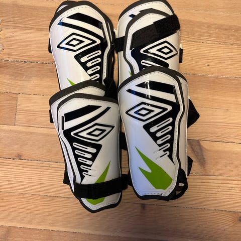 Adidas fotballsko størrelse 36 2/3 med svarte og oransje farger. Leveres med svarte leggskinn med borrelås for feste. Skoene har knotter under sålen.