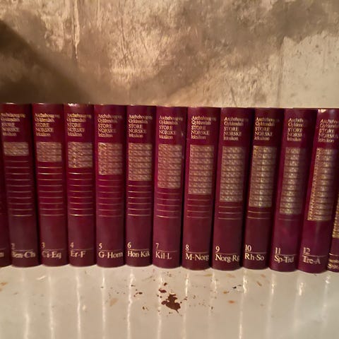 Meget pent eksemplar av 3. og siste utgave av Aschehoug og Gyldendals Store Norske leksikon.