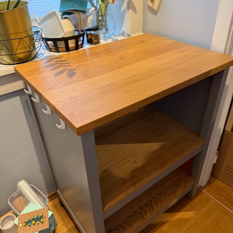 Selger en pent brukt kjøkkenøy. Vi selger den grunnet ommøblering i forbindelse med oppussing. Merke er IKEA, serie Enhet.