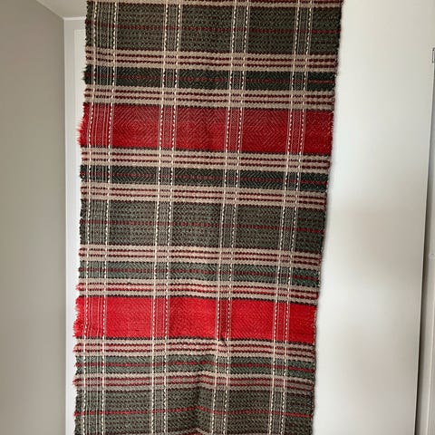 Fint vevd teppe. Litt skjevt men fint allikevel. Alder og opprinnelse ukjent antas laget I Norge. Ull.