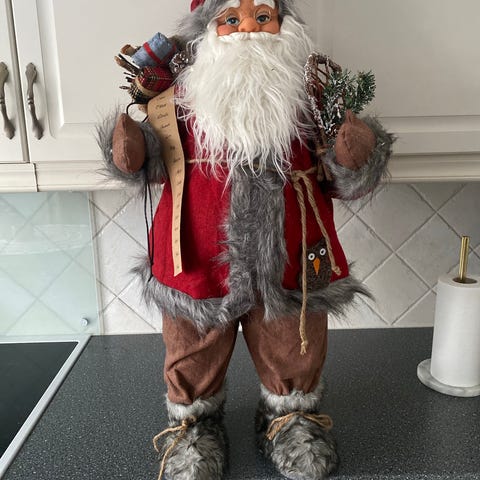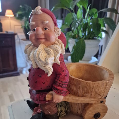 Trivelig nissefar. God og rund. Ekte tøy på seg. Ca 35 cm høy. Sender med posten og bruker vipps.