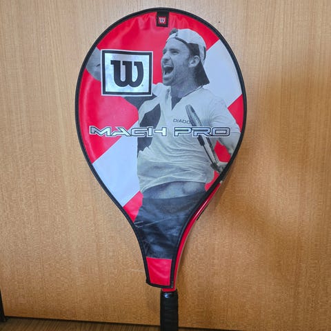 Wilson Pro Staff Tennis racket samt Head Agassi 25i rød og hvit farge. Racket har standard størrelse. Pr stk kr 100