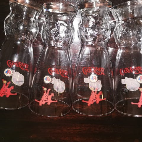 Coca Cola glass. Har kun stått oppbevart i et skap. Om brukt, så er de ikke synlig brukt.