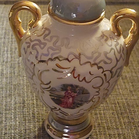 Vasen har en firmalogo i bunnen, men den er ikke synlig når vasen er i bruk.