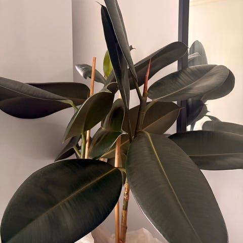 Ficus elastica, også kjent som gummifiken, er en stueplante med store, mørkegrønne blader. Planten er egnet for innendørs bruk og krever moderat lys og vanning.