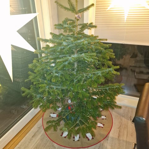 Fikk aldri fargene til å passe til resten av julepynten, derfor aldri brukt. Kun åpnet plasten. Ene esken har skade.