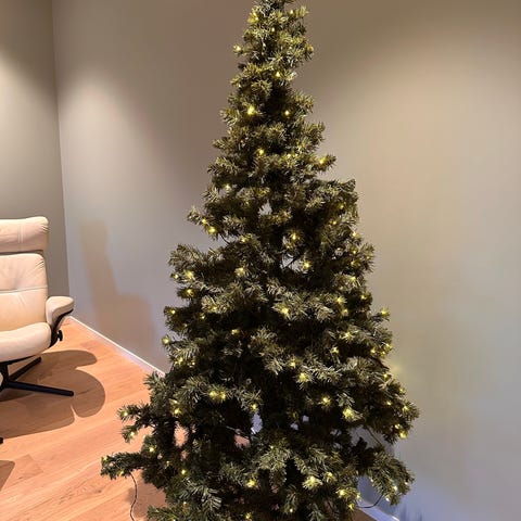 210cm . Med lys. 4 deler. Kjøpte for 3 år siden. Selger på grunnet plassmangel. Nå er juletreet demontert .