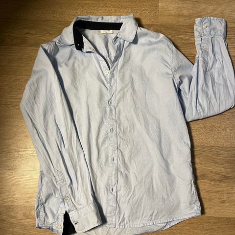Pent brukt skjorter str 164. Mørk blå med små hvite prikker. 98 % bomull og 2 % elastin.