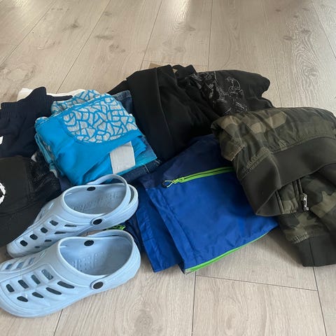 Flekk foran, gjerne litt skitt som ikke er gått bort i vask. Men ikke skjemmende.