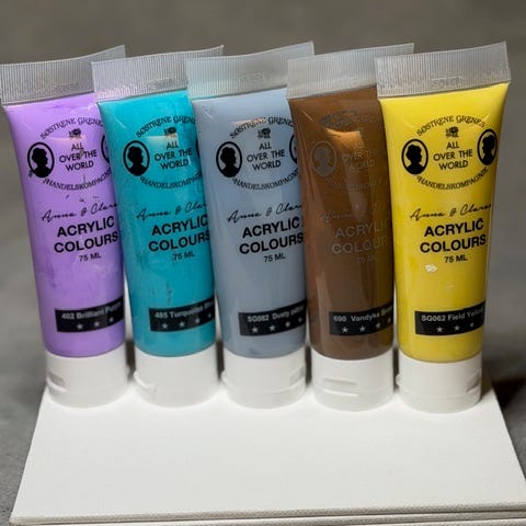 Vannbasert hobbymaling i riktig god kvalitet med høy fargepigmentering som gir en god dekkevne. Tørker raskt og etterlater en silkematt overflate. Egnet til tre, papp, gips osv. 6 farger