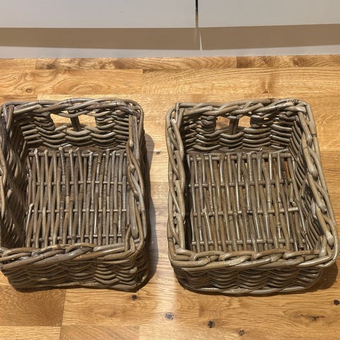 To kurvseksjoner. En med 4 nettkurver (høyde 15 cm) og en med to bokser (høyde 32 cm). Merker i en av boksene (se bilde). Må hentes.