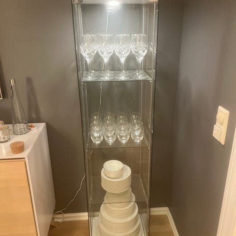 Glasskap i industriell stil, grå. Ny pris 2290kr. I god stand , mangler nøkkel. Hentes i Askim, kan leveres i nærområdet.