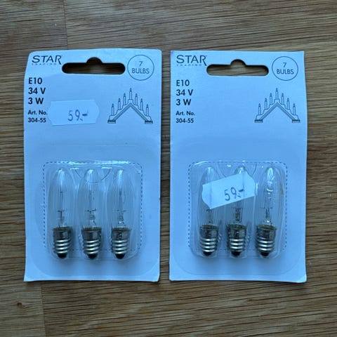 Har flere pakker, pris pr pakke.