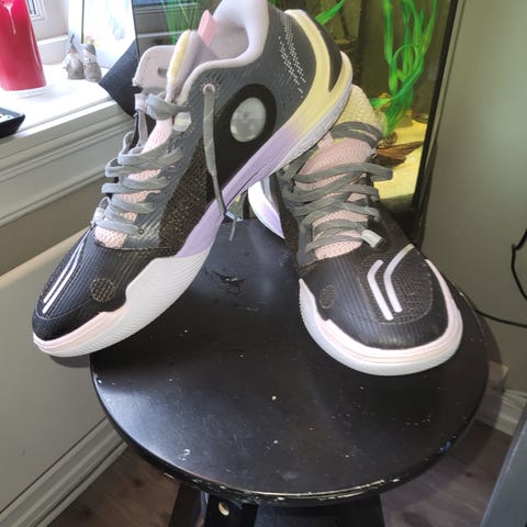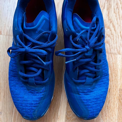 Størrelse 44. Basketballsko, men funker fjell som volleyballsko, håndballsko, eller generell innendørssko også.