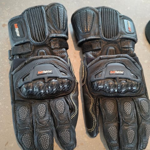Pent brukte skin mc hansker i størrelse M med litt bruksmerker. Fremdeles lang levetid på dem men blir bare ikke brukt lenger pga bil. Kan strammes bak tommel og hondled