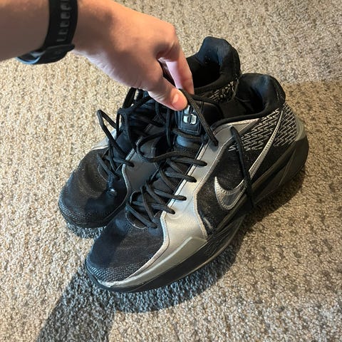 Størrelse 44. Basketballsko, men funker fjell som volleyballsko, håndballsko, eller generell innendørssko også.