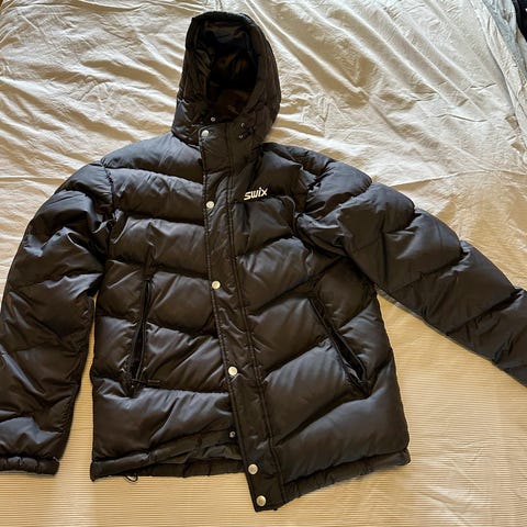 Swix Jakke i størrelse L, svart farge og laget av dun. Jakken er designet for menn og egnet for utendørsbruk.