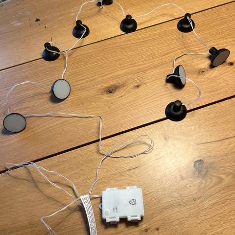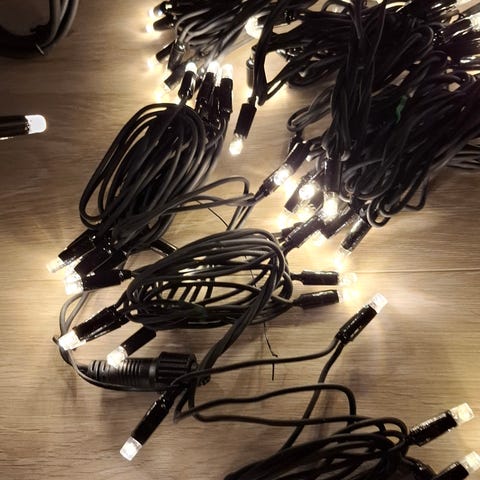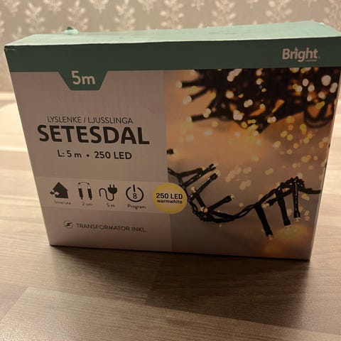 Ny ubrukt lyslenke med 200 multifarhede led-lys for innendørs og utendørs bruk. 15 meter lang. Kjøpt på Nille for et par år siden.