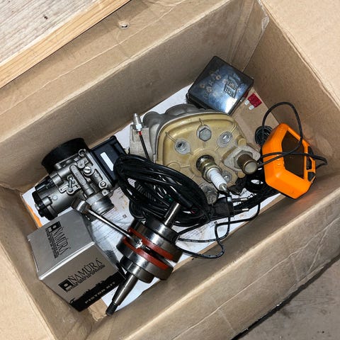 Selger en nybygd am6 motor. Anslått effekt ca. 15-18 hester med rett eksos og dyse.