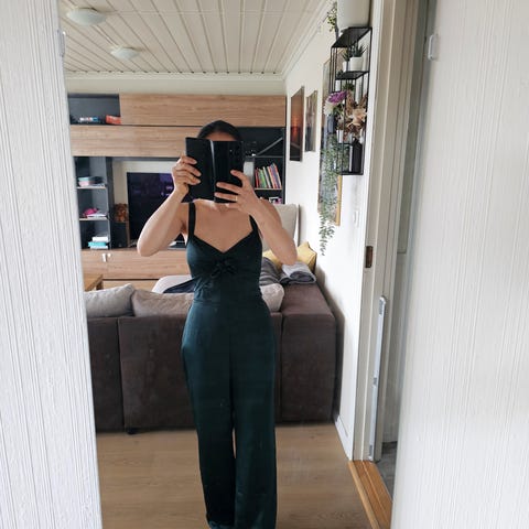 Flott, behagelig jumpsuit i nydelig mørk, marineblå farge. Den er mørkere enn på bildene fra nettsiden, kan se nesten sort ut, avhengig av belysning. Denne er ubrukt! 🌟