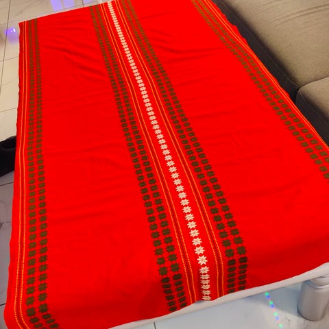 Rød stor juleduk. Bilde 1 viser ekte fargen.