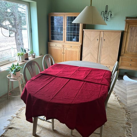 Rød stor duk. Bilde 1 viser ekte fargen.