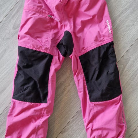 Pent brukt rosa/lilla skallbukse fra Didrikson. Fin å bruke til aking/skøyter/ /ski/ lek med ulltøy under. Den er ikke slik tykk vinterbukse med fôr; dette er en litt tynnere skallbukse som det er lettere å bevege seg i. Passer til bruk hele året, med ull under om vinteren. Str 130