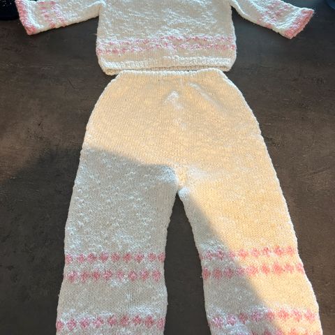 Ny strikket baby sett str 0-1 mnd til salgs.garn alpakka fine