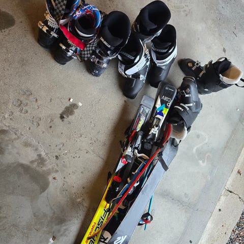 Selger to sett slalåmski med støvler. Da det har blitt for lite for barna. Passer nok barn ca 8 år
