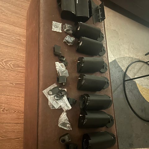 Basshøyttaler, senterhøytaler, 2 stk bakhøyttalere, samt 2 stk front