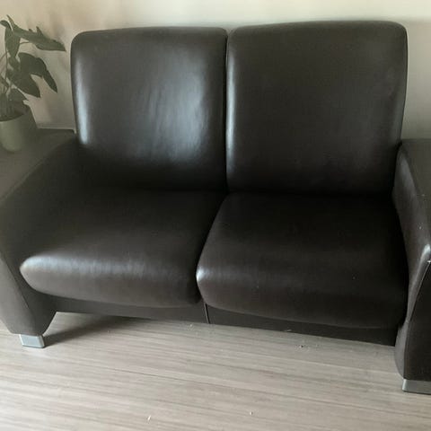 Vi gir bort vår gamle, solide sofa. Den er etter mange år, fortsatt behagelig å sitte i - med god plass til tre personer. Putetrekkene kan vaskes på 60 grader. Som dere kan se av bildene, har det blitt en del bruksmerker. Håper noen kan ha glede av denne videre.