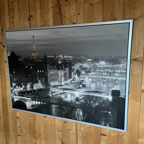 Fototrykk av Brooklyn Bridge med bysilhuett i bakgrunnen. Fremkalt på aluminium.